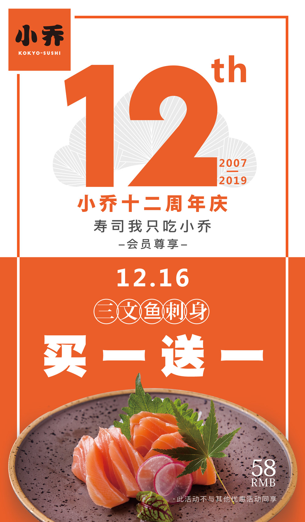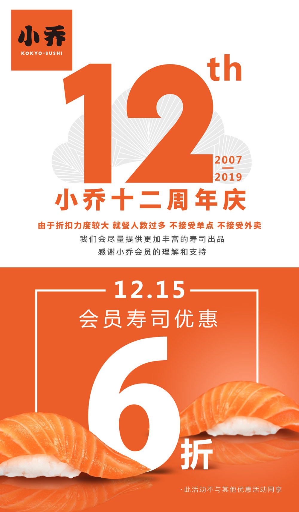丨小乔寿司丨十二周年庆 会员寿司六折