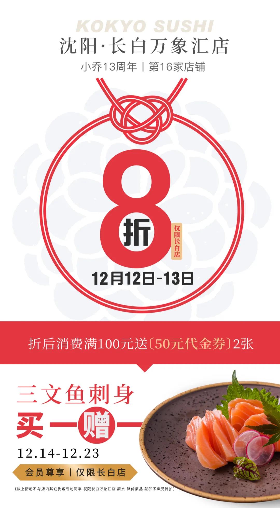 丨小乔寿司丨长白店开业 全单8折优惠 「三文鱼刺身」买一赠一 !!